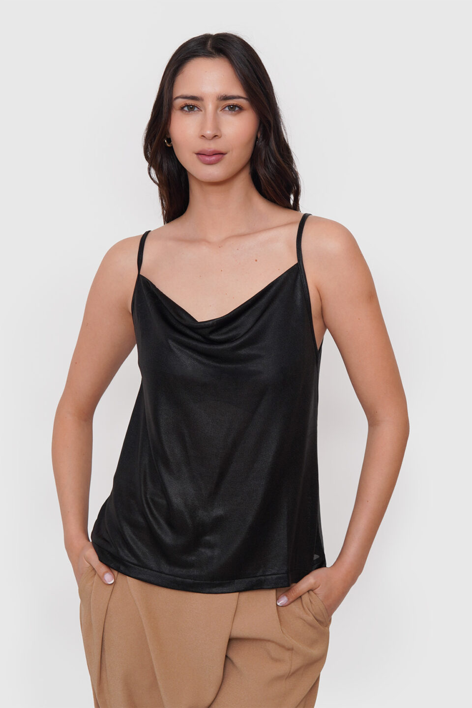 Top Metalizada Escote Caído
