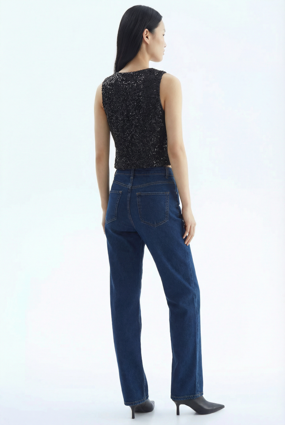 Vestido Elasticado Lentejuelas Forrado + Cierre