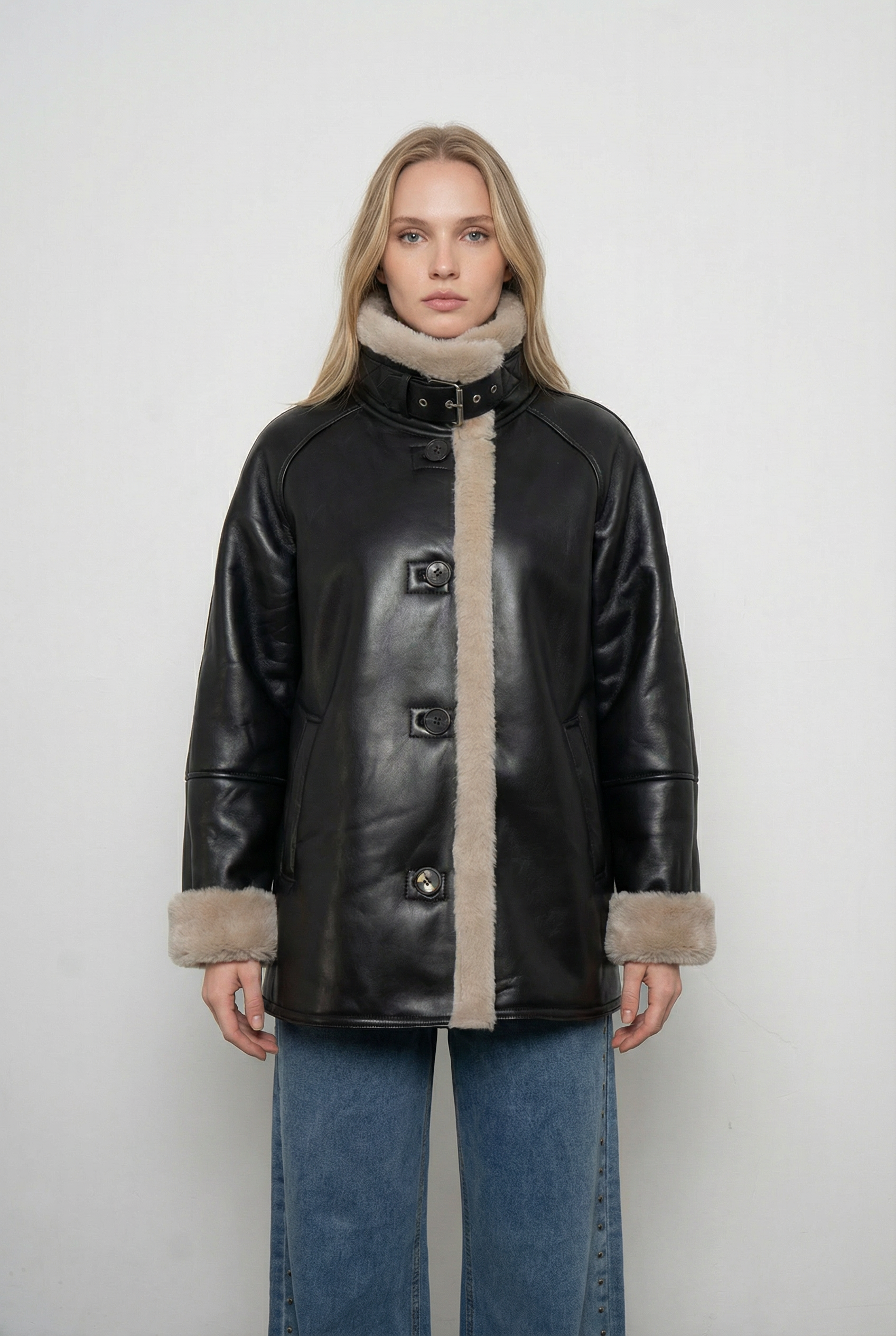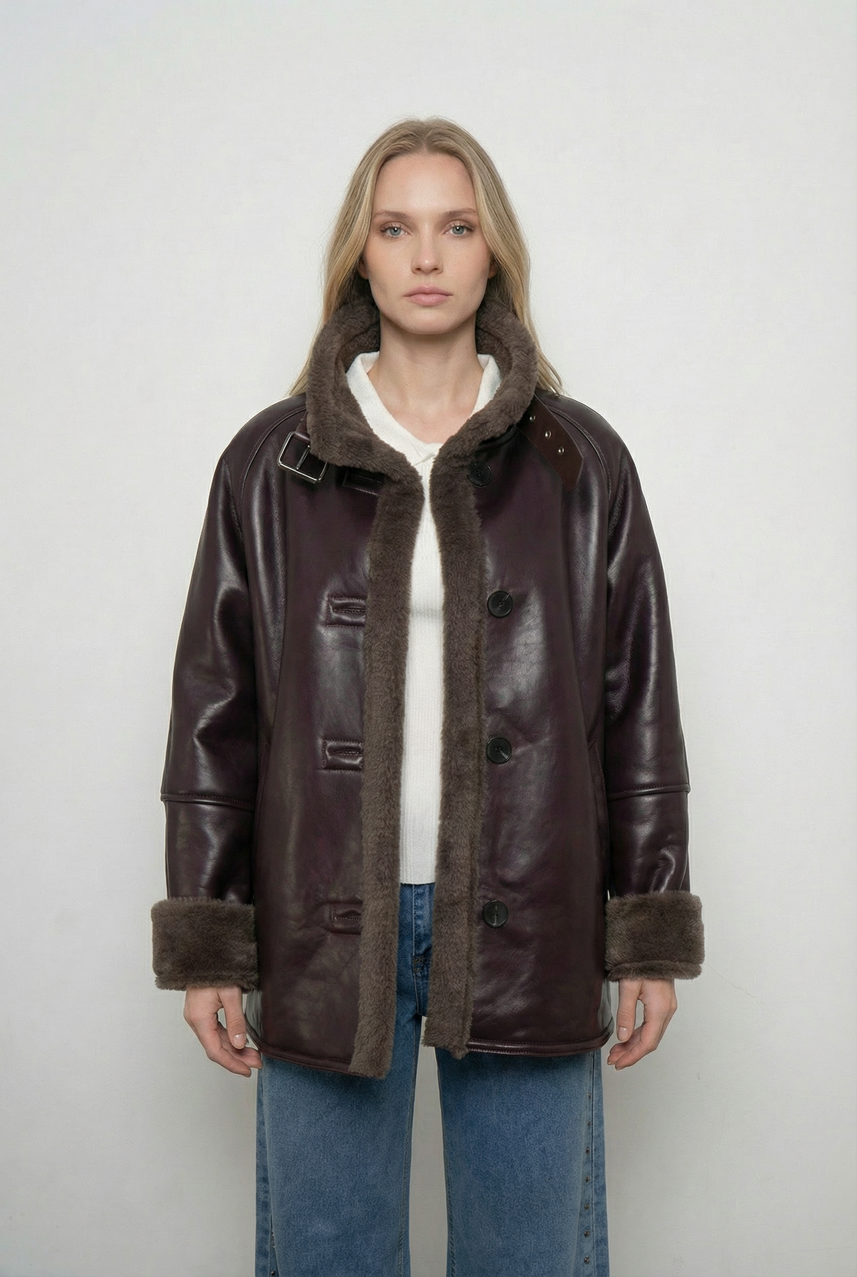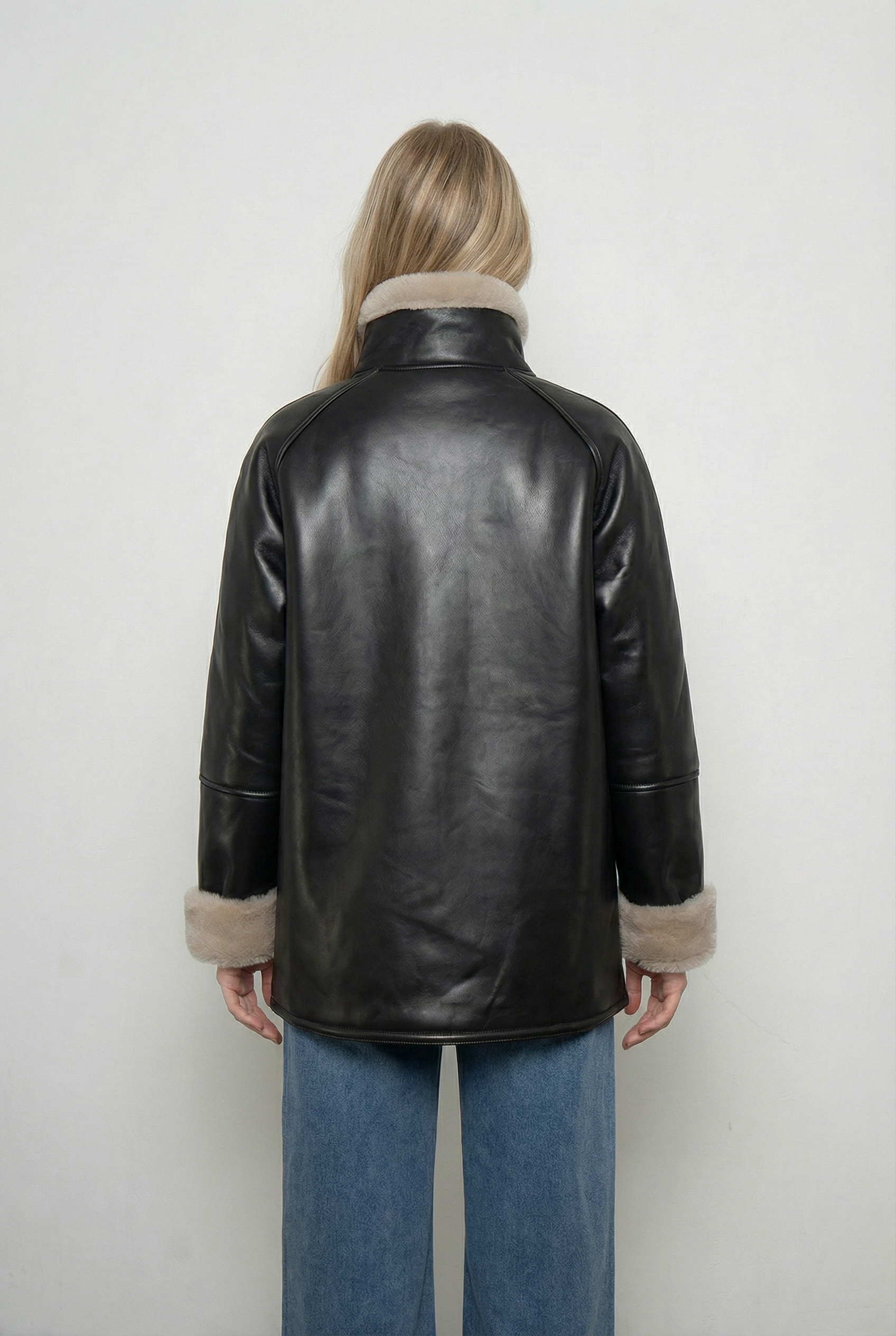 Diseño atemporal que combina estilo y abrigo en una sola prenda. Cuenta con un exterior de efecto cuero premium y un forro interior de chiporro suave que entrega máximo confort y calidez en los días fríos. Su corte estructurado y detalles en cuello y puños la convierten en un básico versátil que eleva cualquier look invernal.