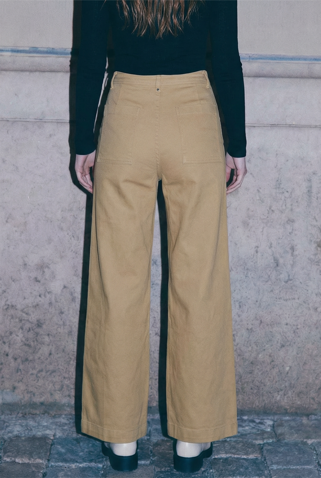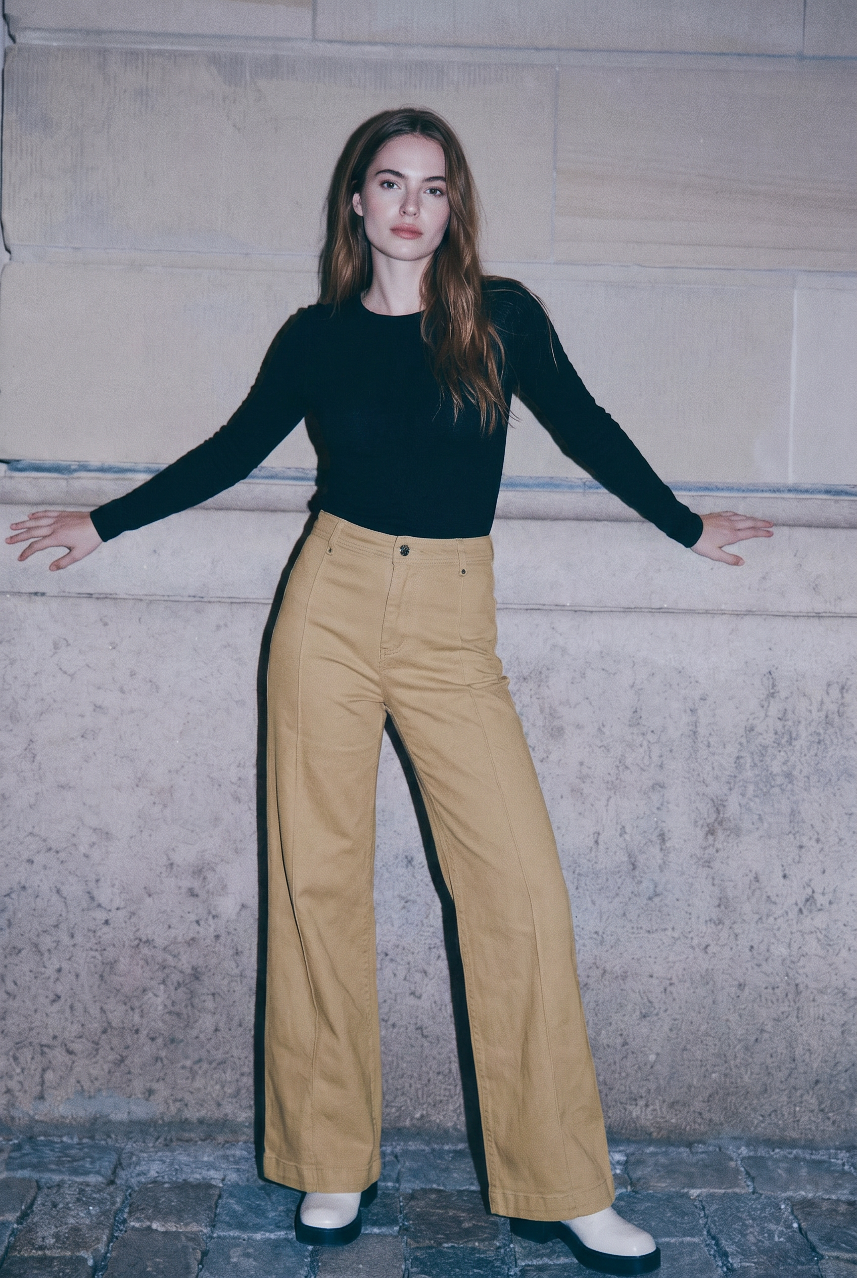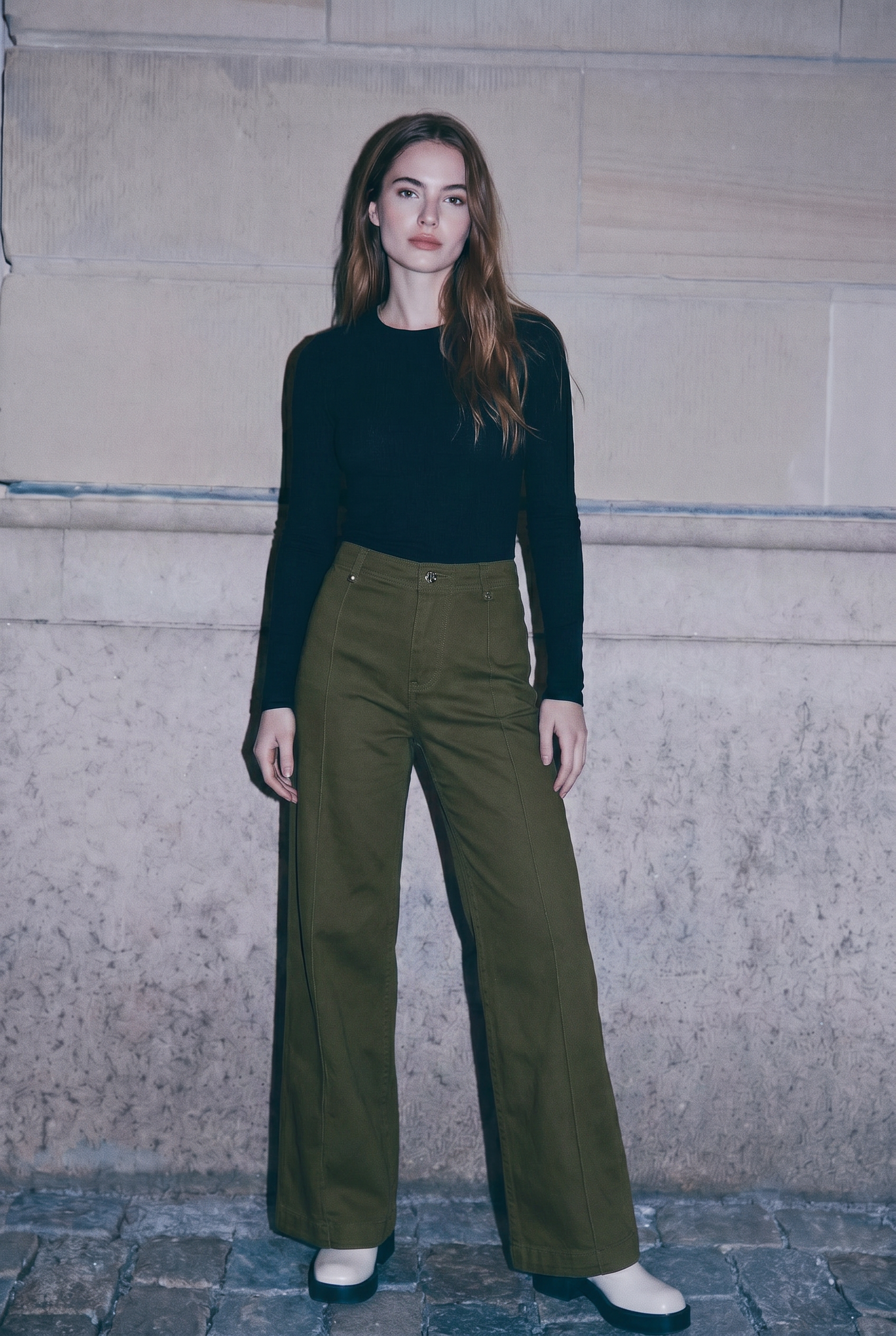 Jeans de calce wide leg y tiro alto, diseñados con tela elasticada que se adapta suavemente al cuerpo brindando máxima comodidad. Su diseño incluye costuras frontales reforzadas que estilizan la silueta, convirtiéndolos en el básico ideal para looks diarios con estilo y movimiento.