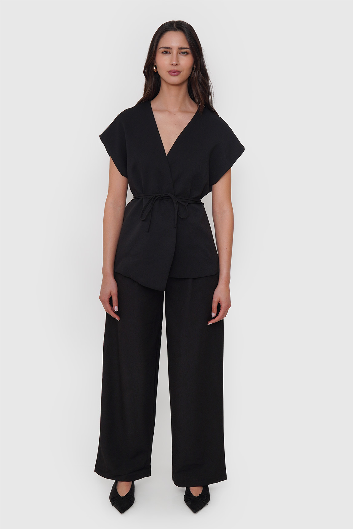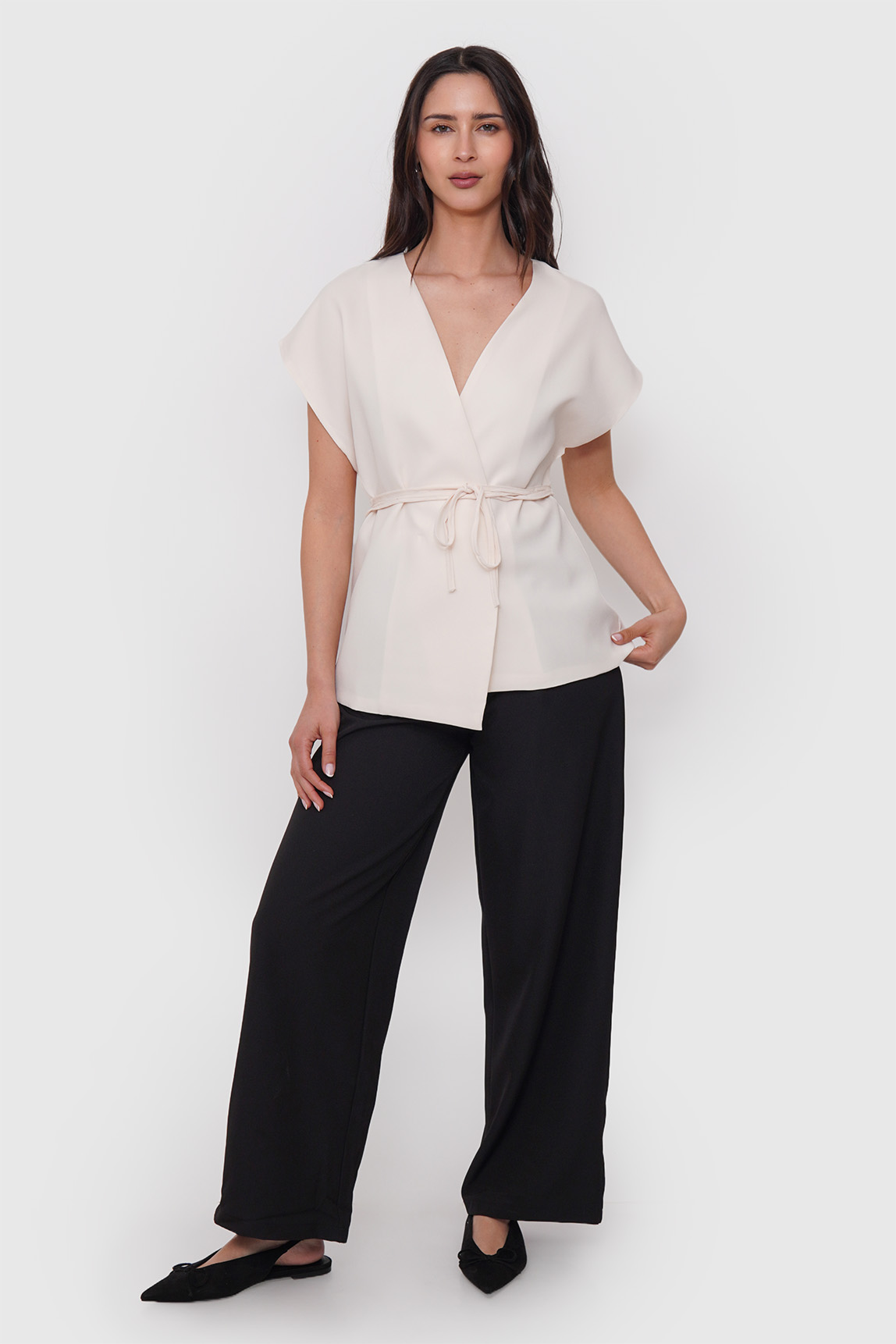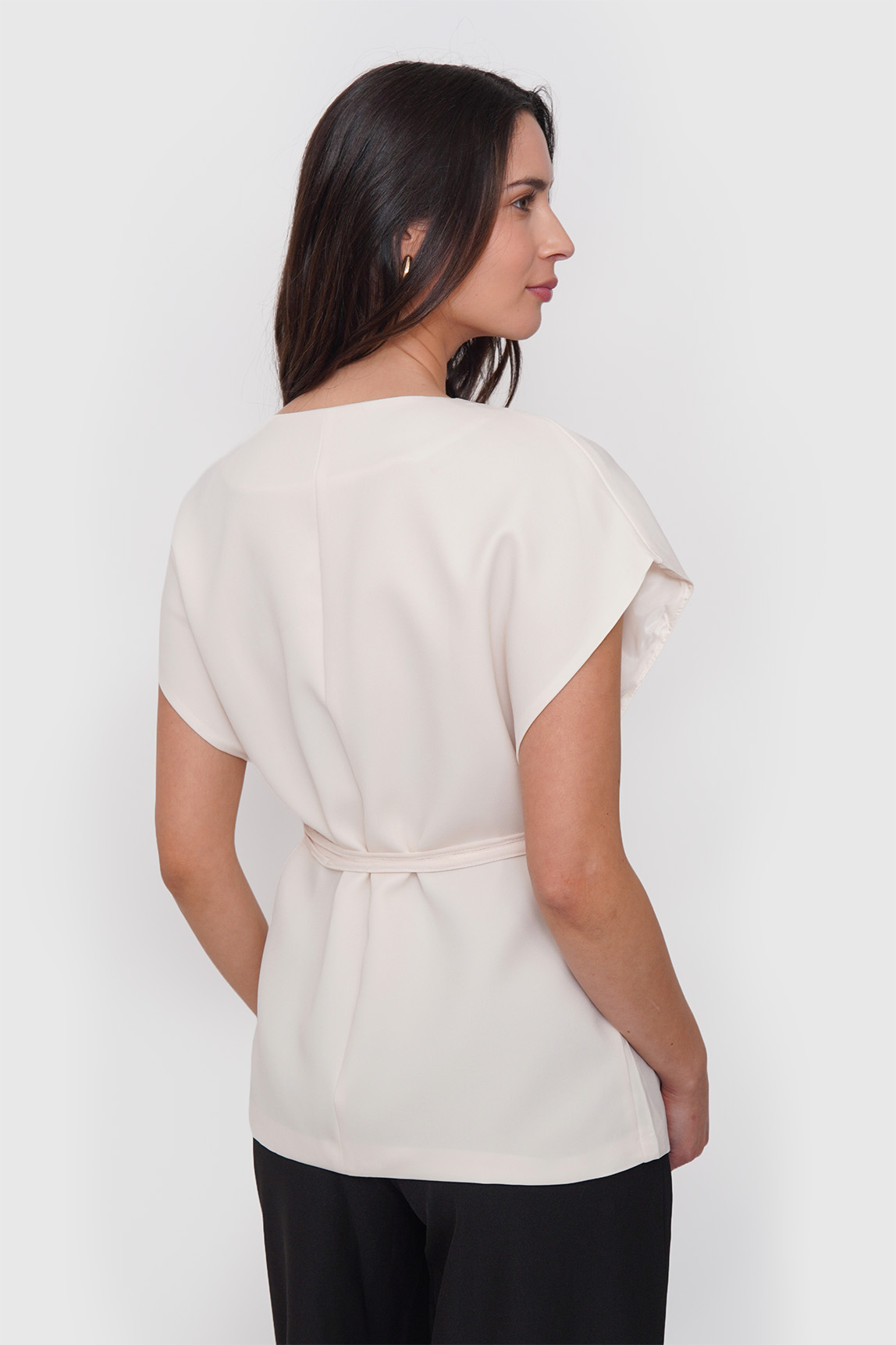 Top estilo kimono con diseño cruzado y cinturón para ajustar a la cintura, confeccionado en tela ligera con forro interior. Un diseño cómodo y elegante que aporta frescura y sofisticación al look.