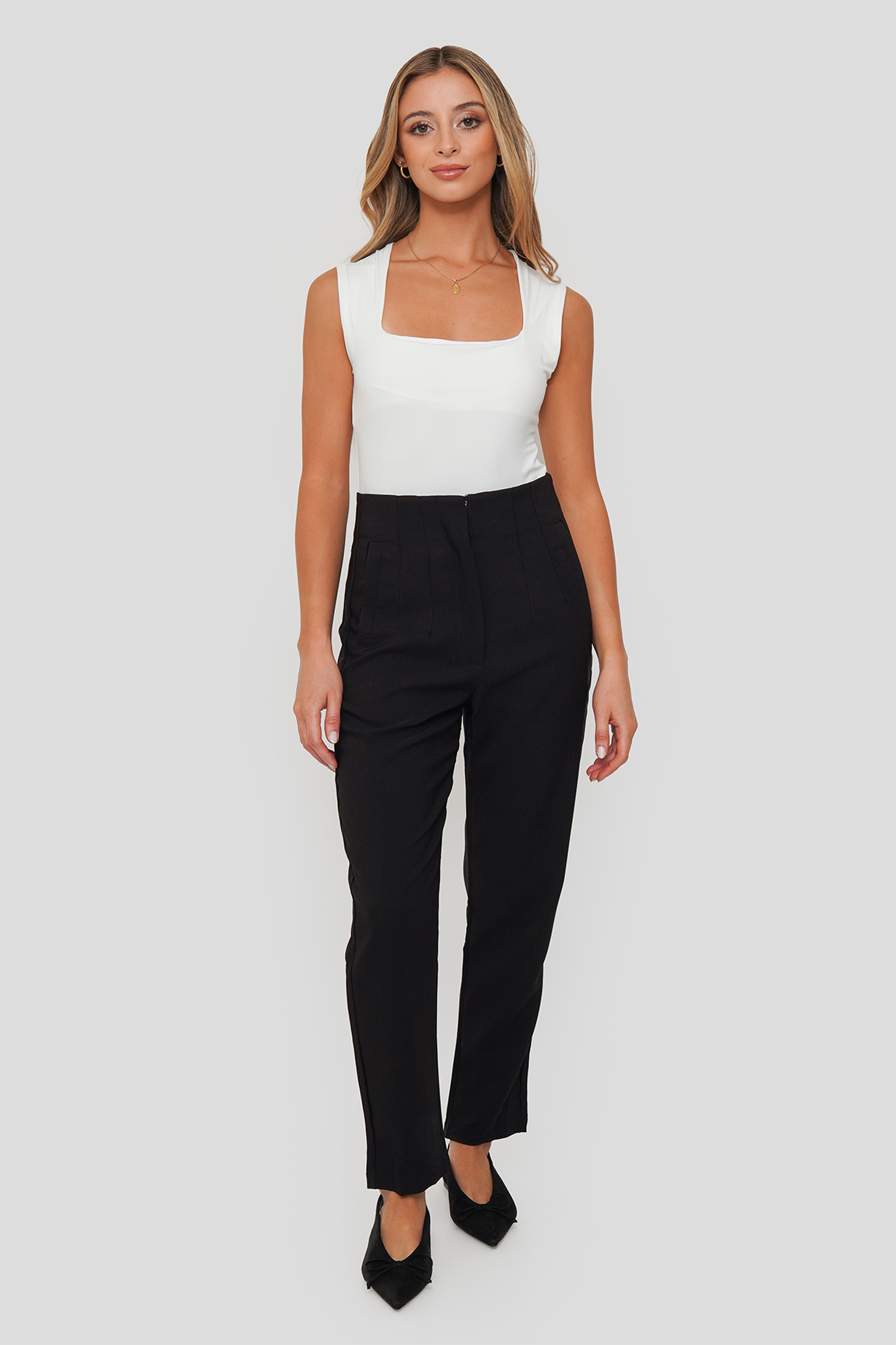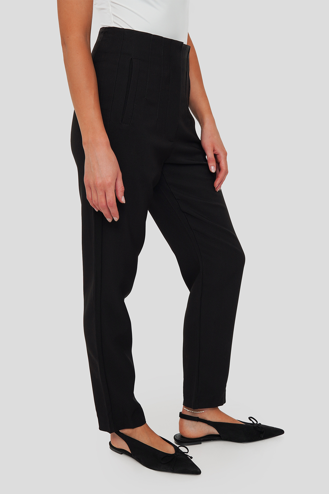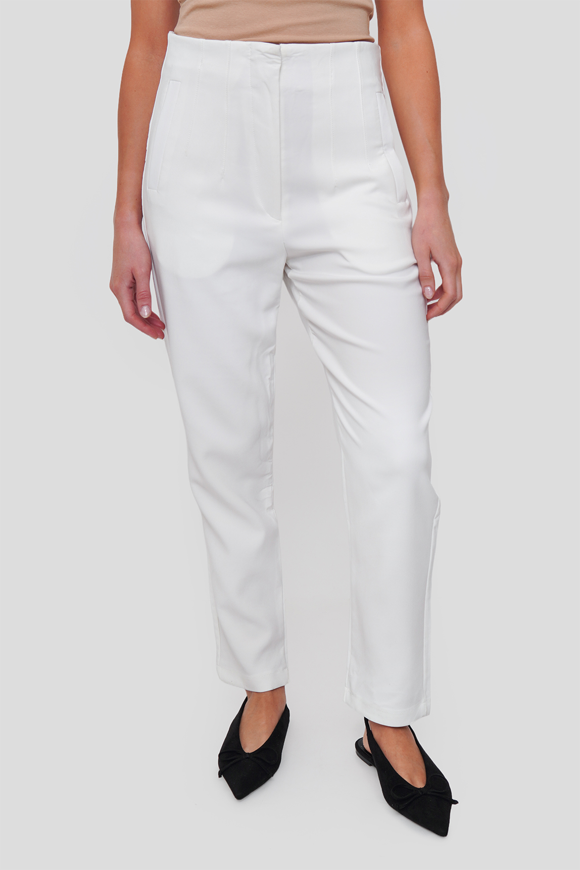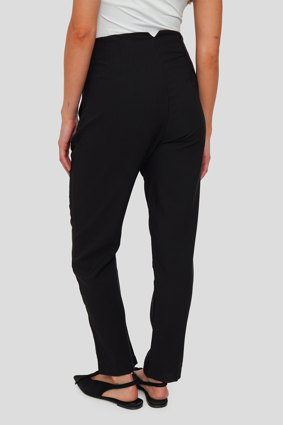 Pantalón de tiro alto con pinzas frontales que estilizan la figura. Diseño elegante y estructurado, ideal para looks formales o casual chic.