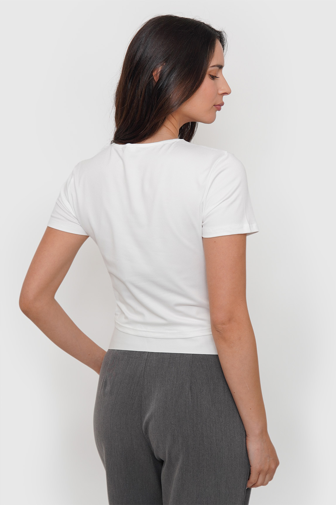 Polera de algodón con lycra, estampado en strass que aporta un toque brillante y moderno. Perfecta para outfits casuales con estilo.