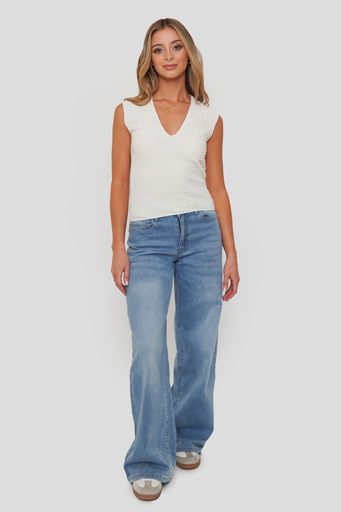 Polera sin mangas con textura y full elasticidad. Calce cómodo que se adapta al cuerpo.